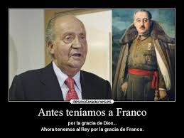 Así respondía Juan Carlos de Borbón en una entrevista que concedía para un medio francés poco antes de la muerte de Franco. Discurso laudatorio del entonces ya designado como sucesor a la Jefatura del Estado a la muerte del dictador. En esta entrevista Juan Carlos de Borbón define el Golpe de Estado perpetrado por Franco en julio de 1936 contra la República como “crisis” y afirma que España no participó en la Segunda Guerra Mundial a pesar del apoyo de la División Azul a las fuerzas nazis y fascistas. El afecto y admiración que le profesaba tiene un hondo proceso histórico.